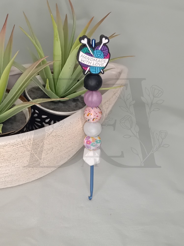Originální háček na háčkování zdobený silikonovými korálky v hravé kombinaci.