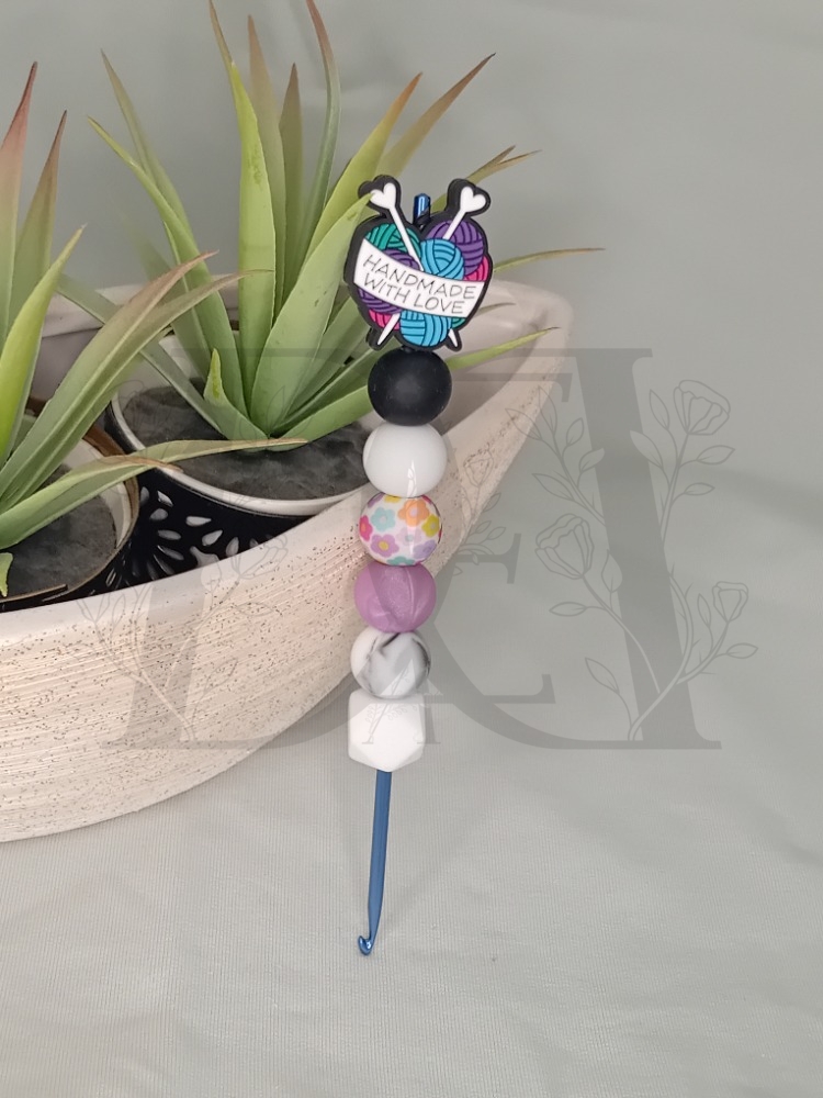 Originální háček na háčkování zdobený silikonovými korálky v hravé kombinaci.