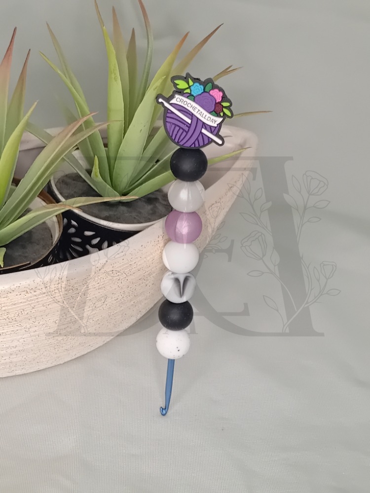 Originální háček na háčkování zdobený silikonovými korálky v hravé kombinaci.