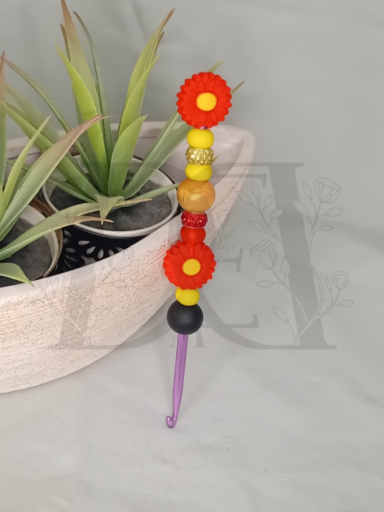Originální háček na háčkování zdobený silikonovými korálky v hravé kombinaci.